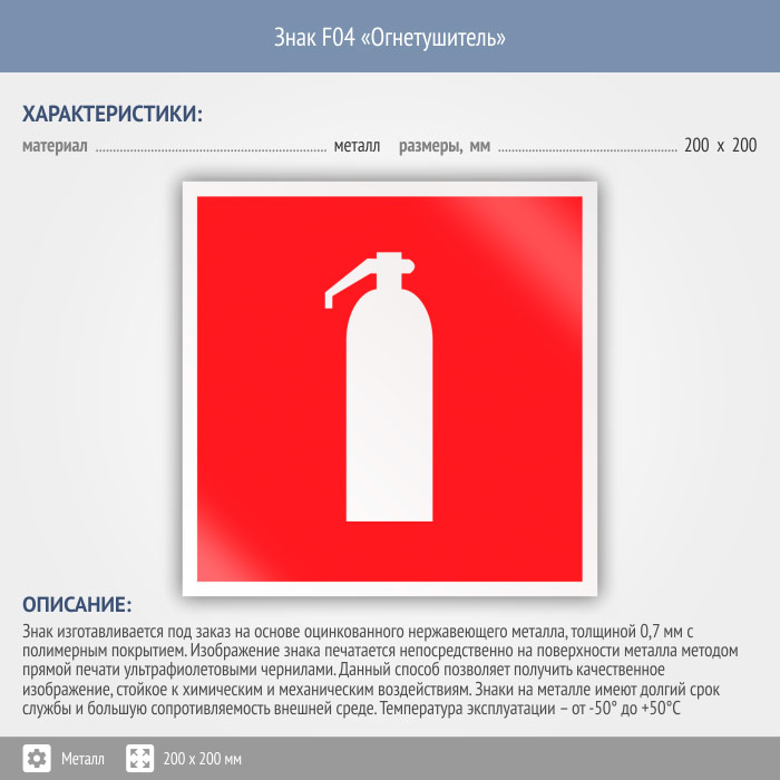 Знак F04 «Огнетушитель» (металл, 200х200 мм) в Москве купить