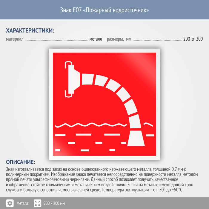 Знак F07 «Пожарный водоисточник» (металл, 200х200 мм) в Москве купить