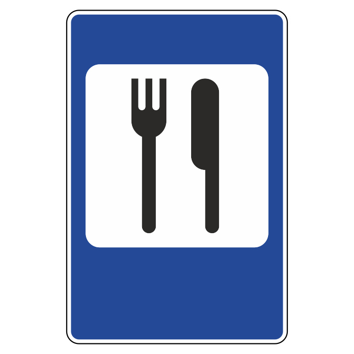 Дорожный знак 7.7 «Пункт питания» (металл 0,8 мм, II типоразмер: 1050х700 мм, С/О пленка: тип Б высокоинтенсивная) в Москве купить